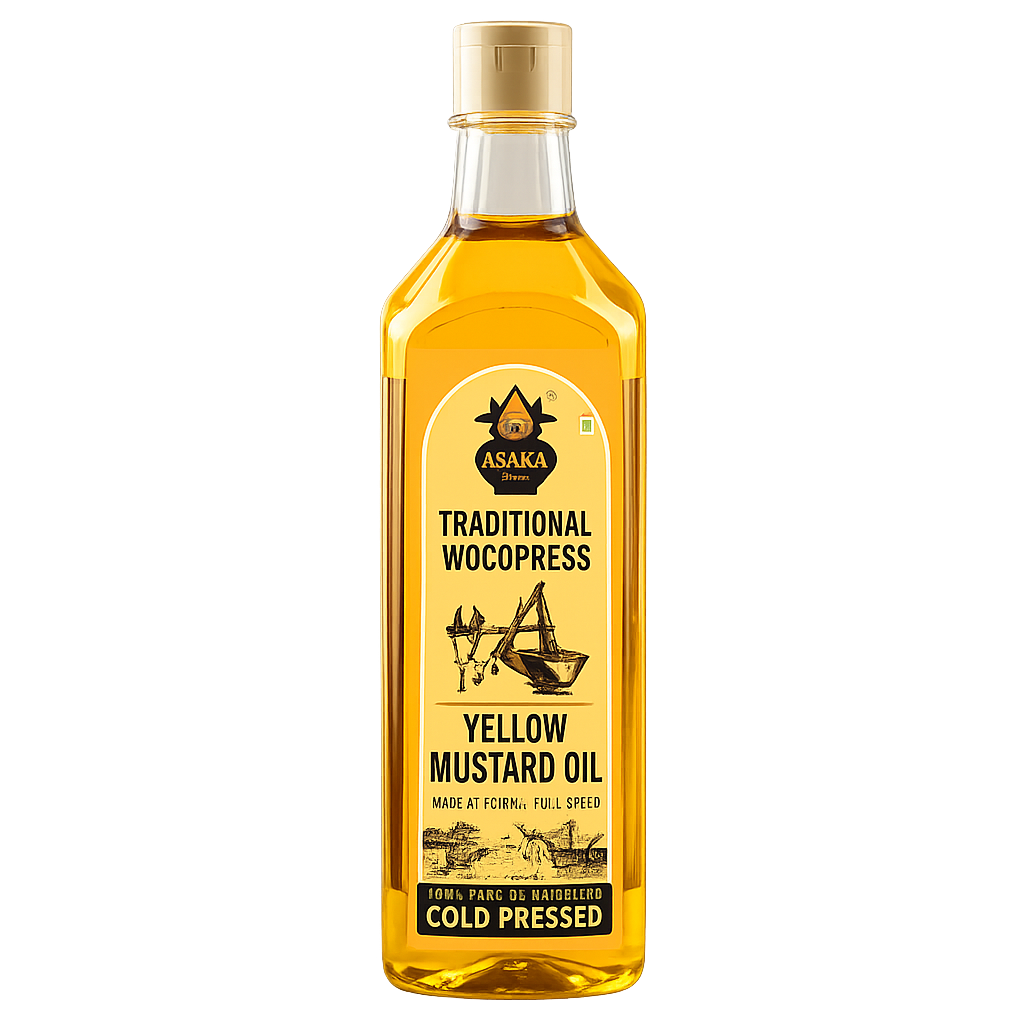 ASAKA Wood Press Mustard Oil carries the bold aroma and golden warmth that has long been cherished in traditional kitchens. Slowly extracted through the age-honored wood press method, it preserves the natural pungency, strength, and purity of mustard seeds. Ideal for cooking, sautéing, pickling, and daily meals, it brings depth of flavor while supporting wholesome nourishment. Crafted with care, it retains its natural nutrients and authentic character—just as it has been done for generations.