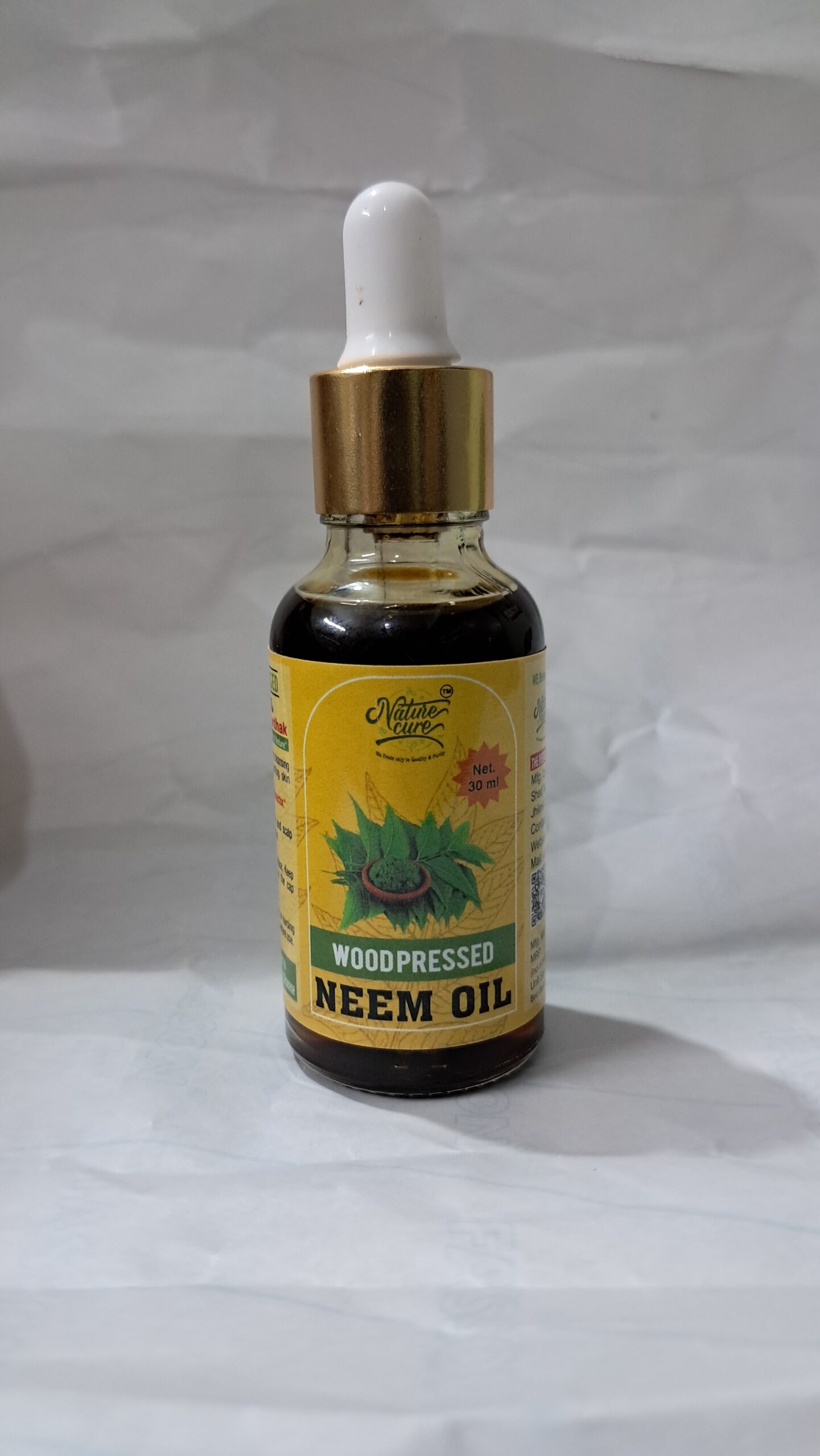 Traditional wood-pressed neem oil made from pure neem seeds, ideal for natural hair and skin care routines. 30 ml bottle.